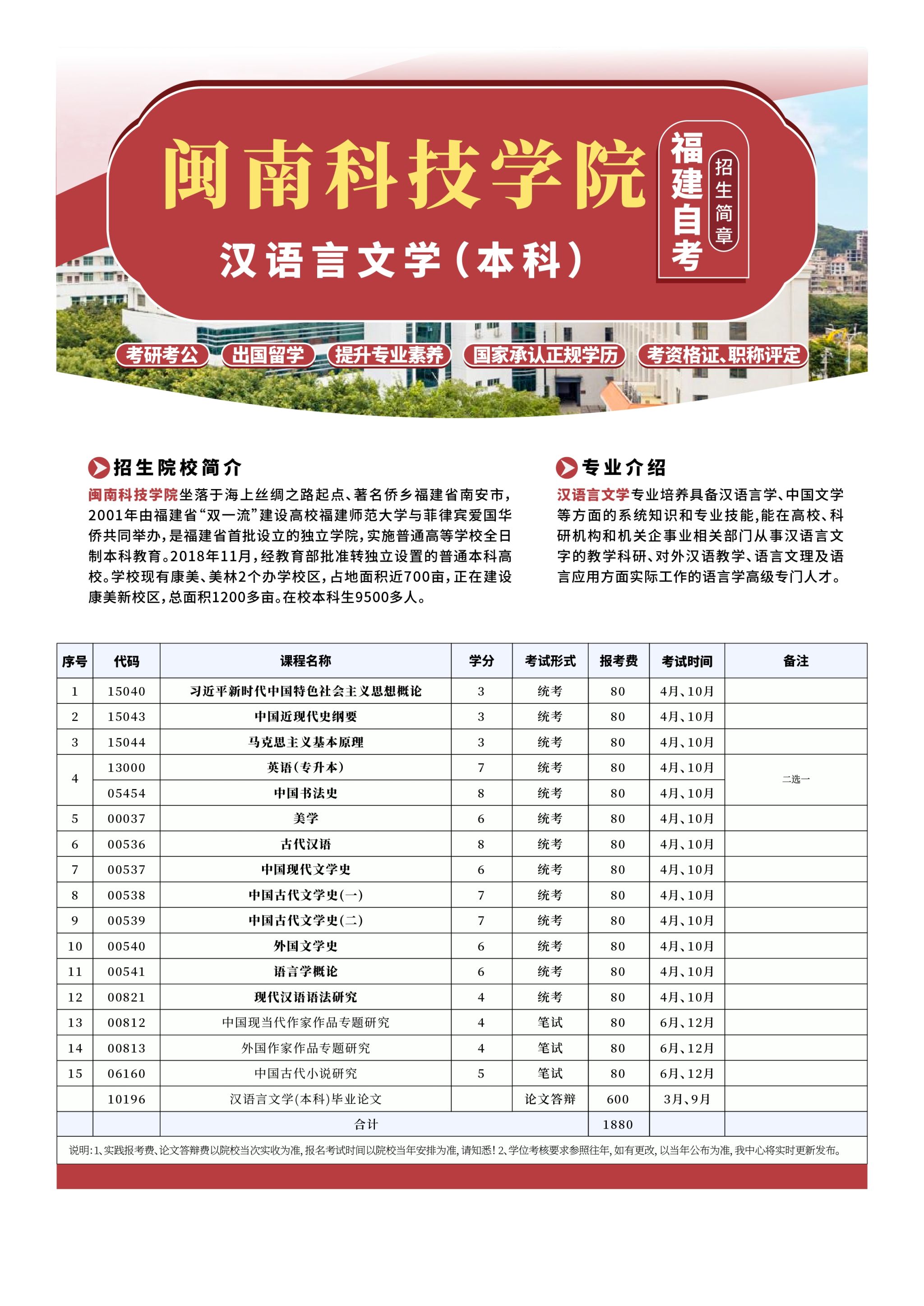 本专业为高等教育自学考试本科层次。根据高等教育自学考 试的特点,注重考核应考者掌握基础知识的程度,以及应用基础知识分析问题和解决实际问题的能力。故总体要求与一般普通高等公司汉语言文学专业本科水平要求一致。本专业考试课程共计14门,总学分共计 76 学分。其中必设课程 9门,共计 52 学分; 选设课程 5门,共计 24 学分。凡取得本专业所规定的全部课程考试合格成绩和规定学分,思想品德经鉴定合格,毕业论文答辩达到规定要求者,发给高等教育自学考试本科毕业证书,国家承认其学历。其学业水平达到国家规定的学位标准的,按照主考学校有关申请学士学位的规定,可申请学士学位。