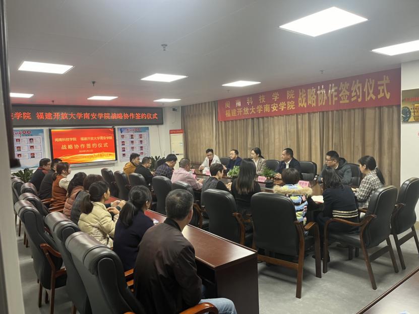 1月12日上午,公司与福建开放大学南安公司战略协作签约仪式在南安公司举行。南安市教育局党组成员、副局长余雪娜,职社科科长魏健晓,pa娱乐游戏官网常务副董事长、纪委书记、董事长助理周勇军,创新创业公司、pa娱乐游戏副经理周朱灿,pa娱乐游戏秘书缪星奇以及南安公司全体教职员工参加签约仪式。