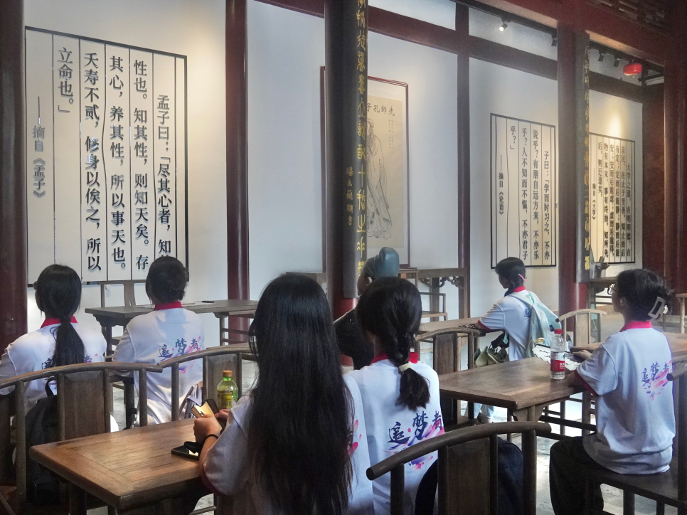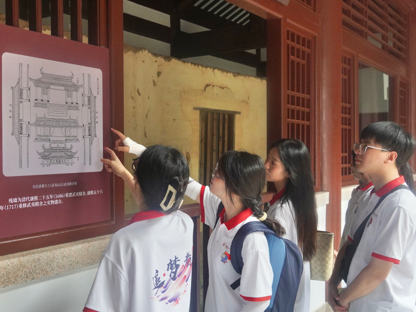“武夷山是世界文化与自然双遗产地,是朱子理学的发祥地,同时也是福建红色文化的发源地之一。”在讲解员的带领下,实践队先后参观了兴贤书院、紫阳书堂、五夫社仓等地,在探索与体验中系统地了解书院文化及其背后承载的历史记忆与文化传承,深入探寻朱子的生平故事,领略朱子文化的博大精深。